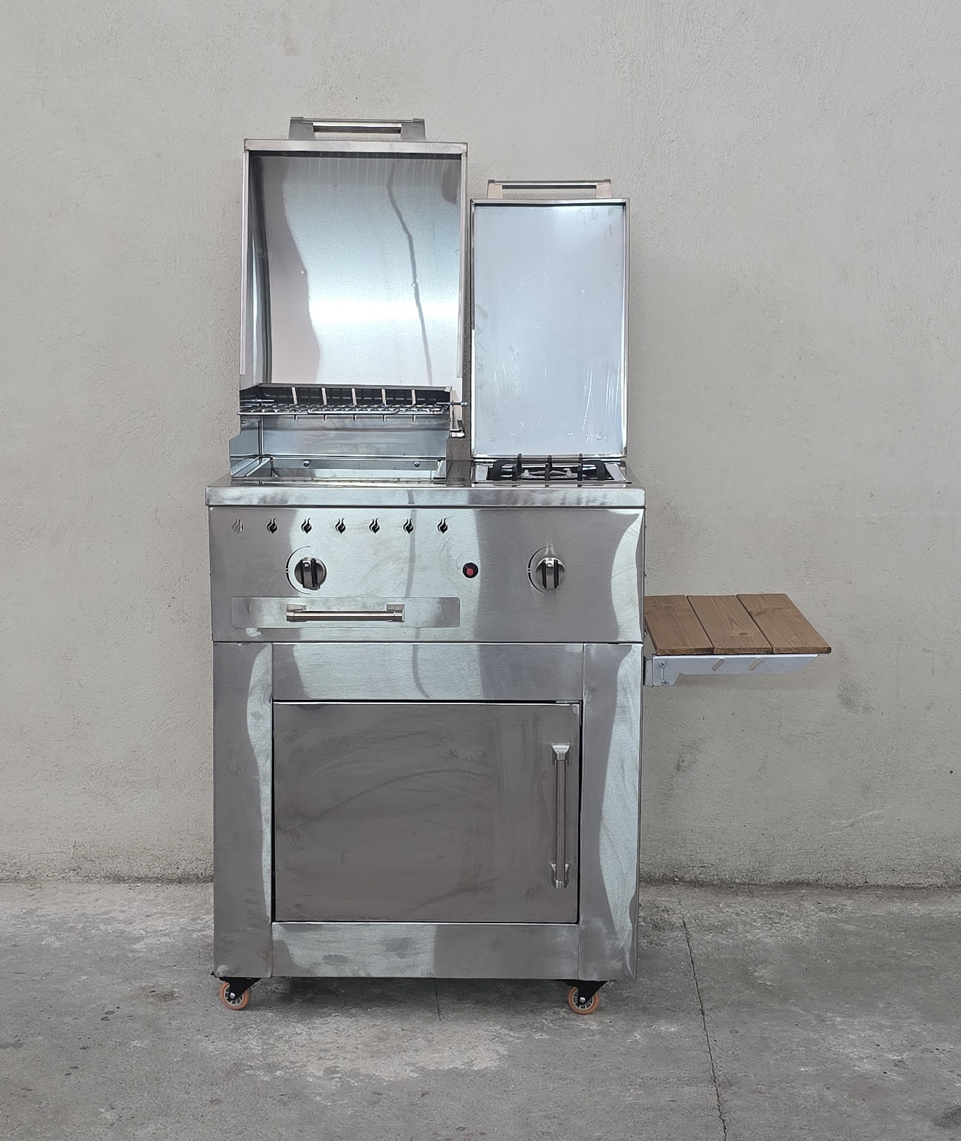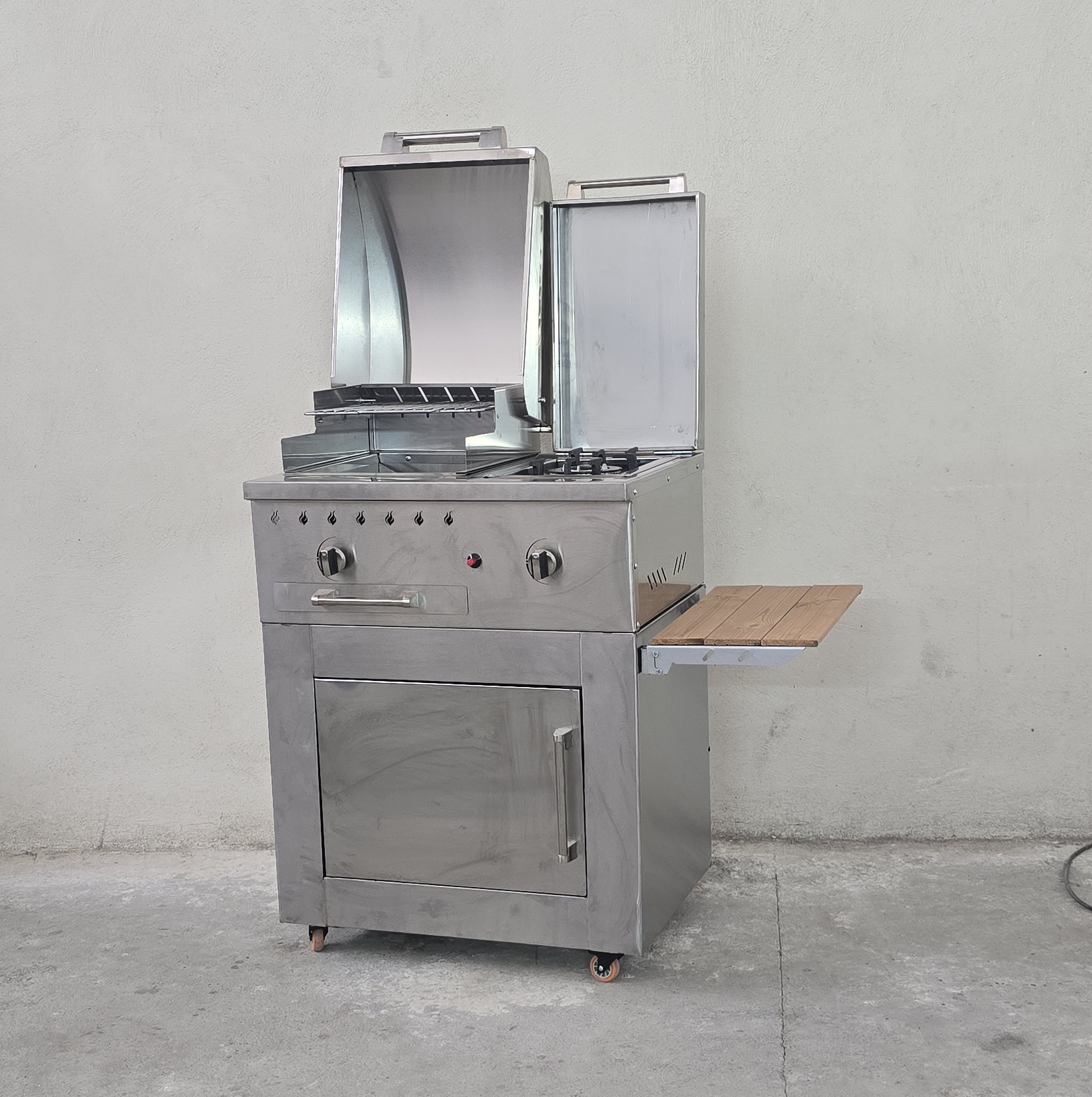 باربیکیو استیل نگیر درب دار پلوپز کنار 70 سانتی همراه کابینت فول استیل 304