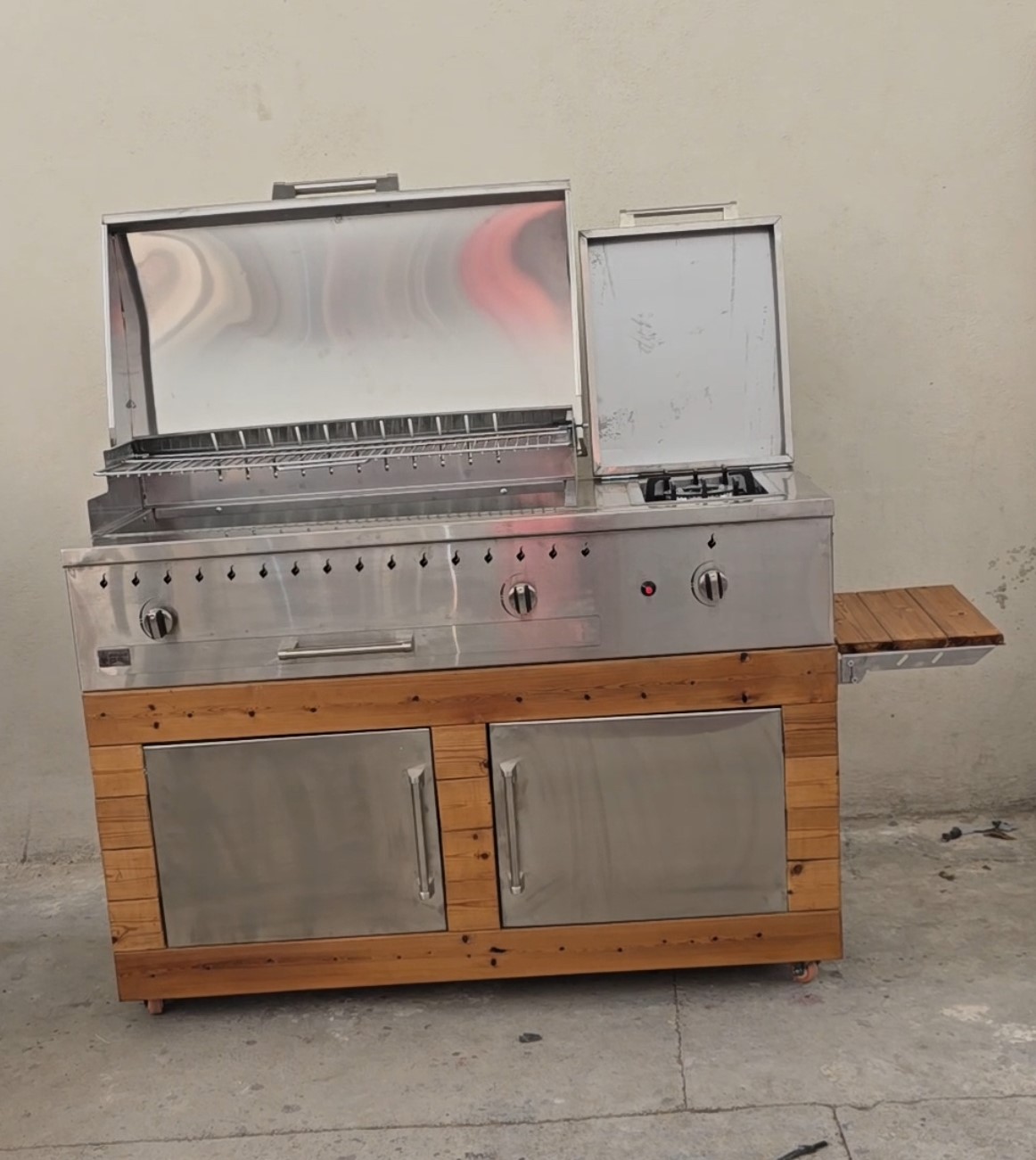 باربیکیو استیل نگیر درب دار پلوپز کنار 130 سانتی همراه کابینت فول استیل 304