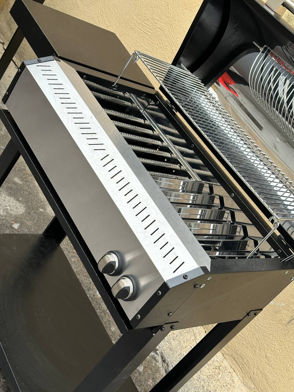 ✔️لوله های شعله و محفظه پخت داخلی کار فول استیل 304 (مقاومت خیلی بیشتر و بهتری نسبت به آهن داره و توی حرارت و آب خوردگی و رطوبت آسیب نمیبینه و نمیپوسه)✔️درب کار به صورت دولایه (درب اصلی ورق روغنی و یک لایه استیل از داخل کشیده شده برای گریل بهتر و آسیب کمتر به رنگ اصلی در)✔️رویه چدن 6ضلعی مستحکم 35 سانتی یا رویه استیل به انتخاب شما (نه چدن بی کیفیت بازاری که 30سانت هم بیشتر نیست)(معمولا رویه های کاررو چدنی میزاریم برای اینکه حرارت بهتری رو به خودش نگه میداره و پخت بهتری بهتون میده)✔️گارد بیرونی کار استیل که نمای کار هست استیل مغناطیسی با برش های تمام لیزری✔️دهنه 35 سانتی (برخلاف فروشندگان محترم که از 30 سانت بیشتر فضای سیخ ندارند کار های ما 35 سانتی میباشد)✔کلاف کشی شده با بهترین متریال✔ورق بسیار ضخیم 1میل (نه ورق های بی کیفیت بازاری کهحلبی و ضعیف هستند)✔️رنگ الکترواستاتیک (نه رنگ های بی کیفیت و ارزان بازاری)✔️تکه شدن و خورد شدن تمام کار از پایه تا درب کار(جهت حمل و جابه جایی آسان)✔شعله های تمام استیل 304 با کیفیت (نه لوله های بی کیفیت بازاری که آهنی درجه 3 هستن)