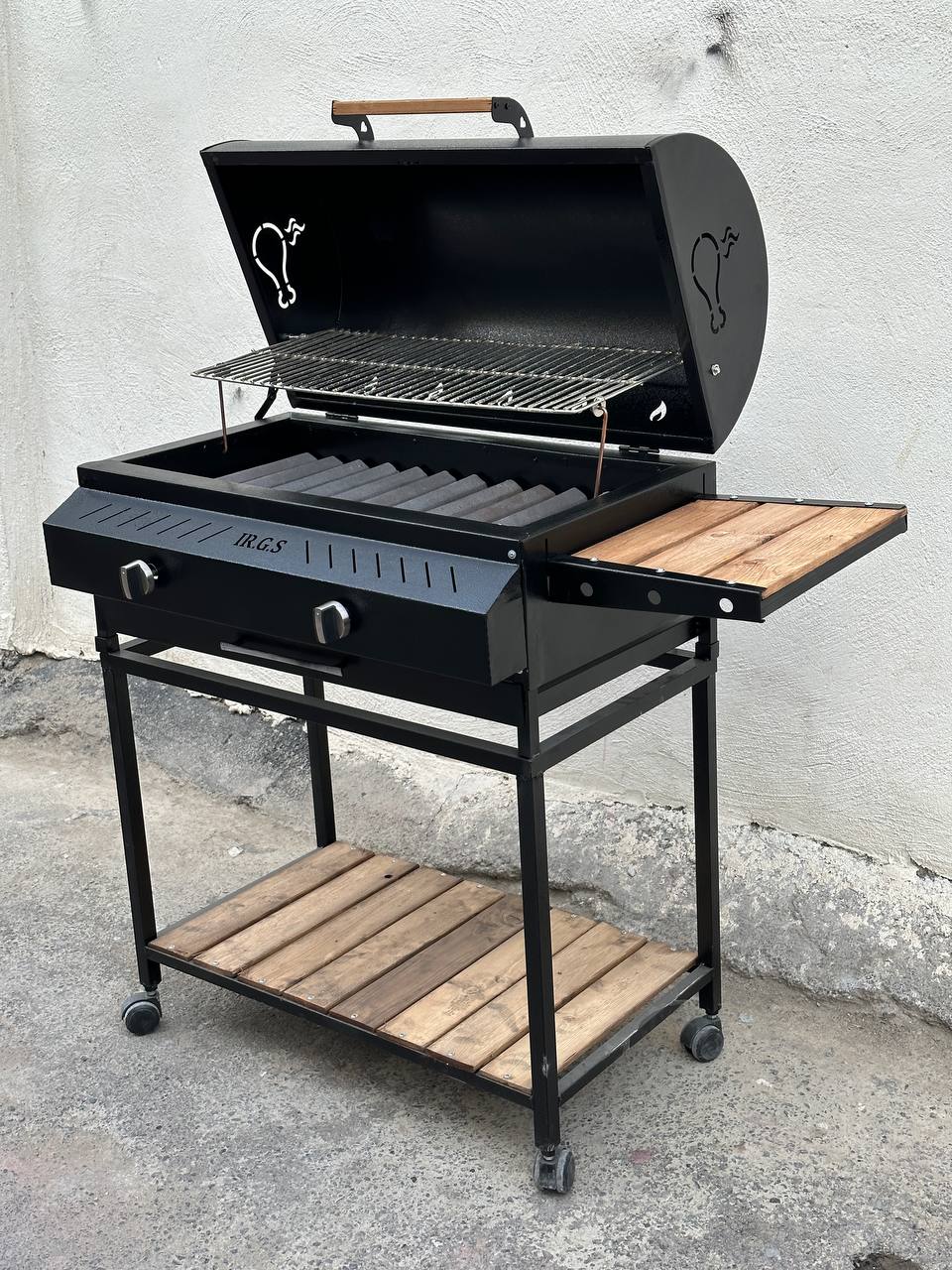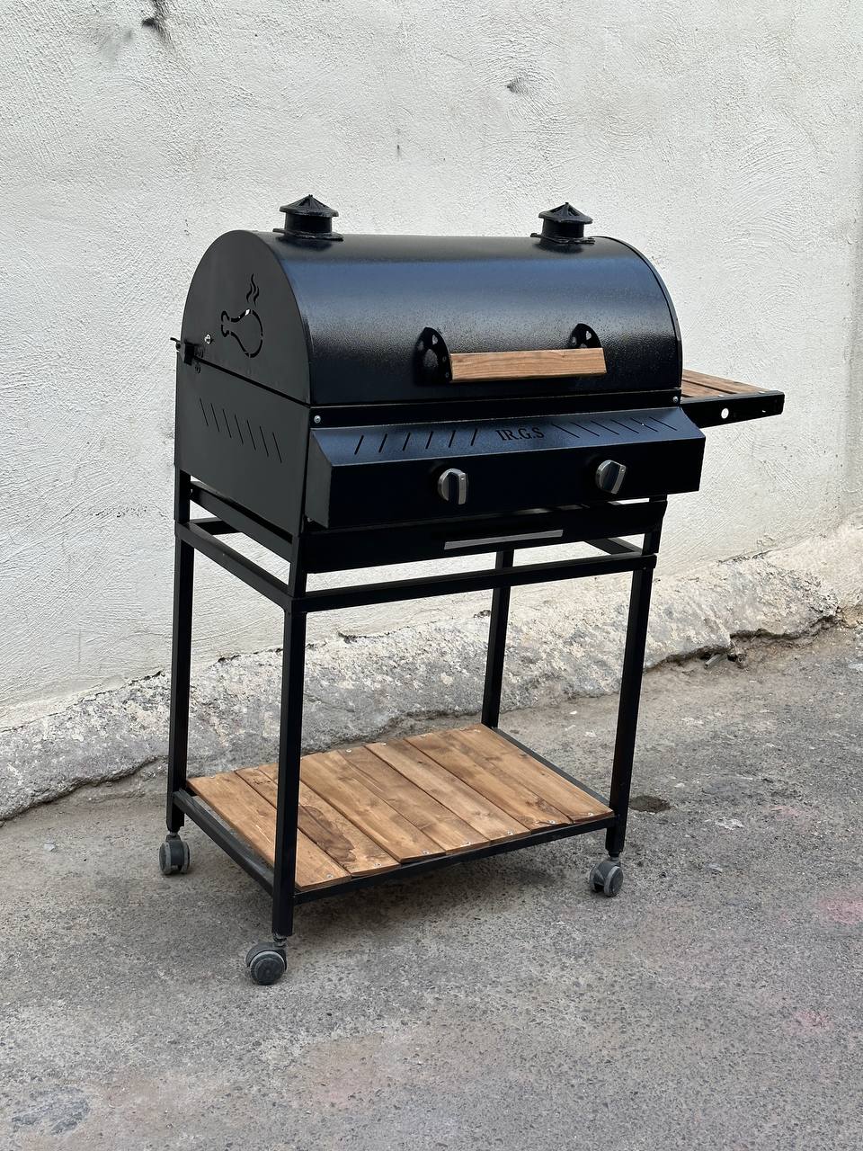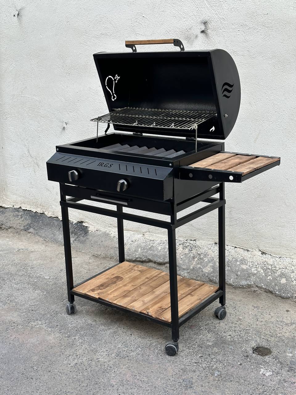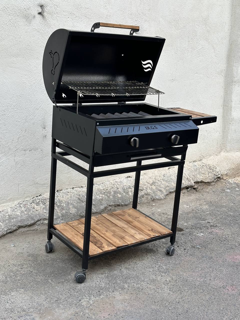 باربیکیو دوگانه گازی زغالی 70 سانتی 10 شعله دهنه 35 سانتی دارای میز کنار توری گریل و استیک 4 چرخ کباب پز دومنظوره گازی زغالی باربیکیومحمد