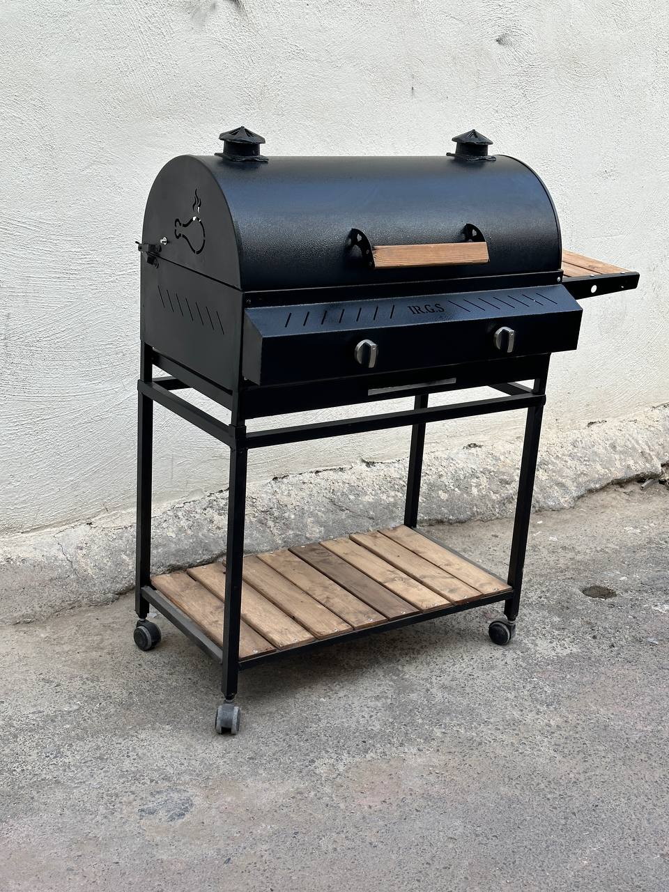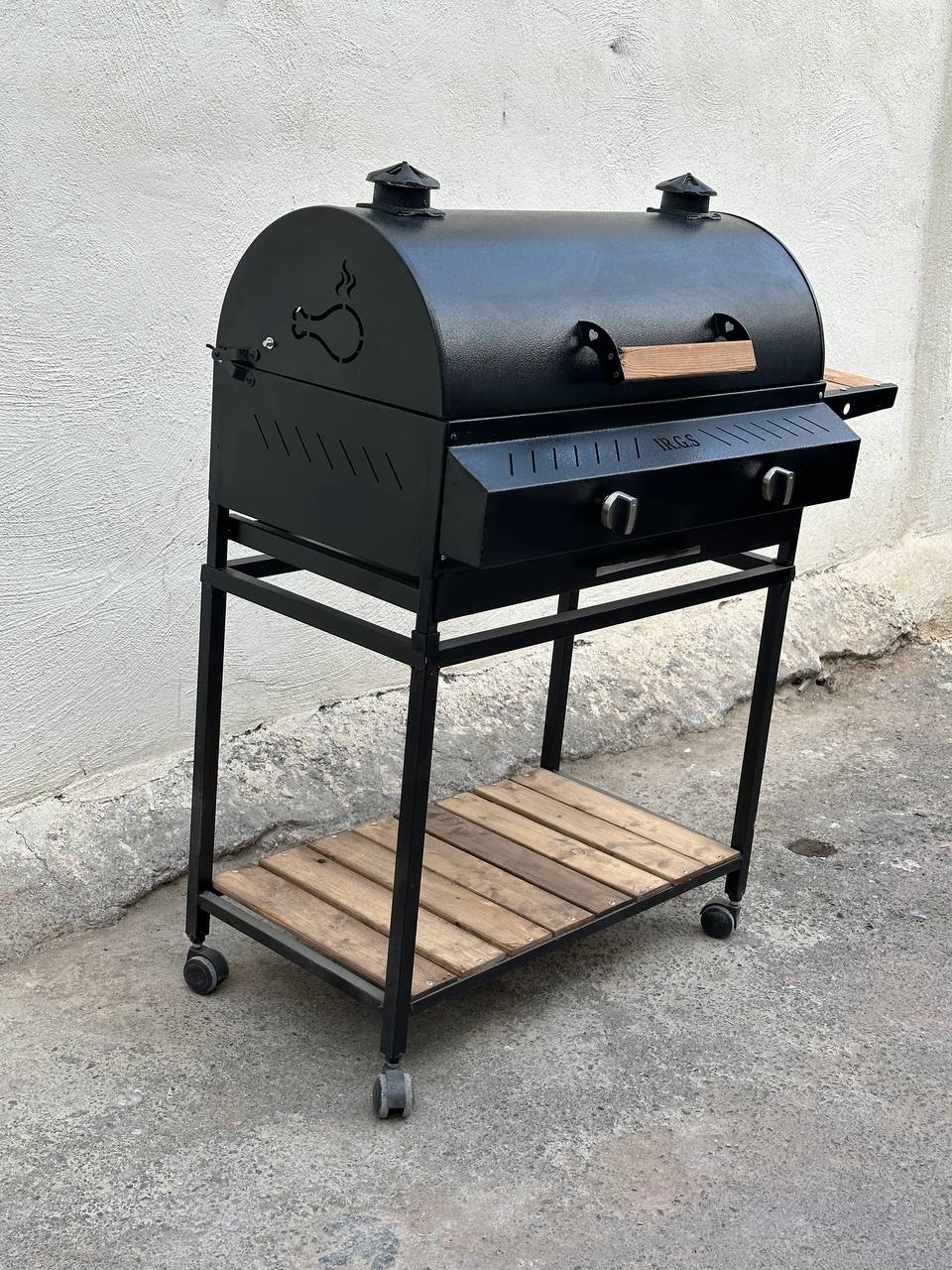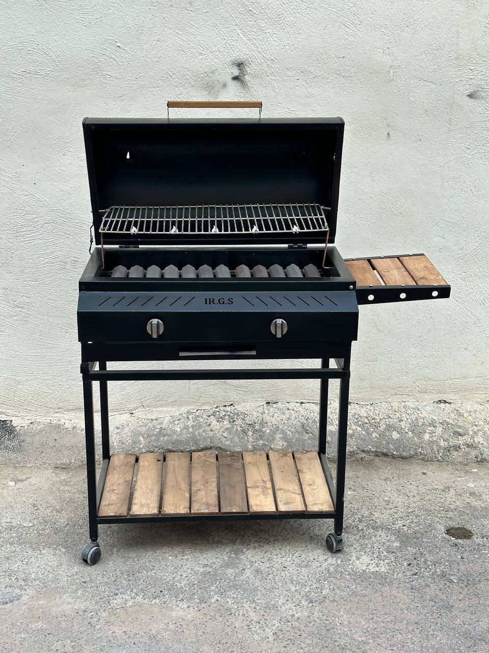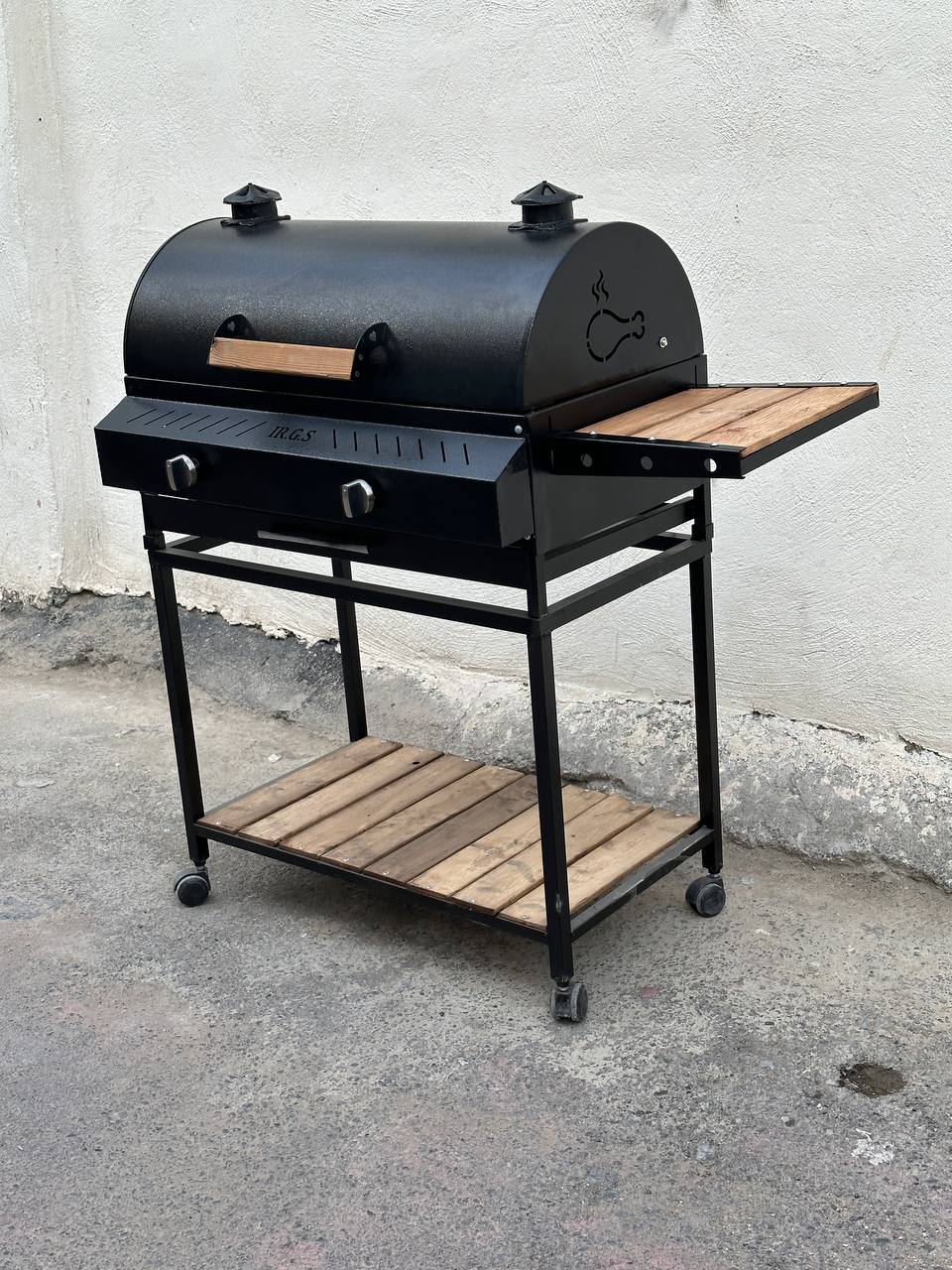 باربیکیو دوگانه گازی زغالی 80 سانتی 12 شعله دهنه 35 سانتی دارای میز کنار توری گریل و استیک 4 چرخ کباب پز دومنظوره گازی زغالی باربیکیومحمد
