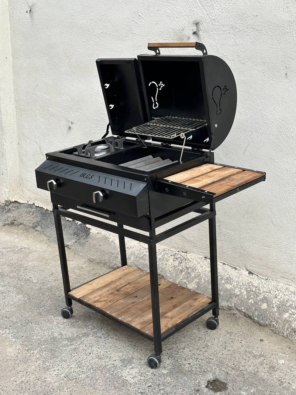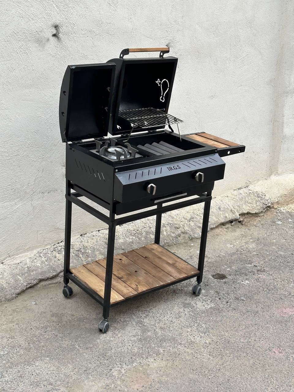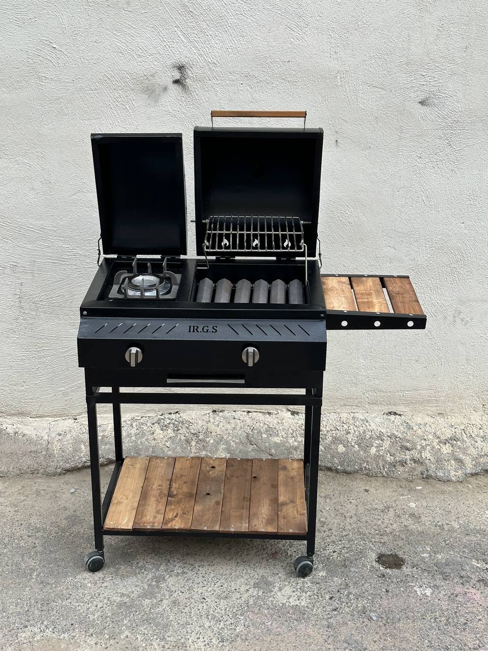 باربیکیو دوگانه گازی زغالی اجاق کنار 70 سانتی 6 شعله دهنه 35 سانتی دارای میز کنار توری گریل و استیک 4 چرخ کباب پز دومنظوره گازی زغالی باربیکیومحمد