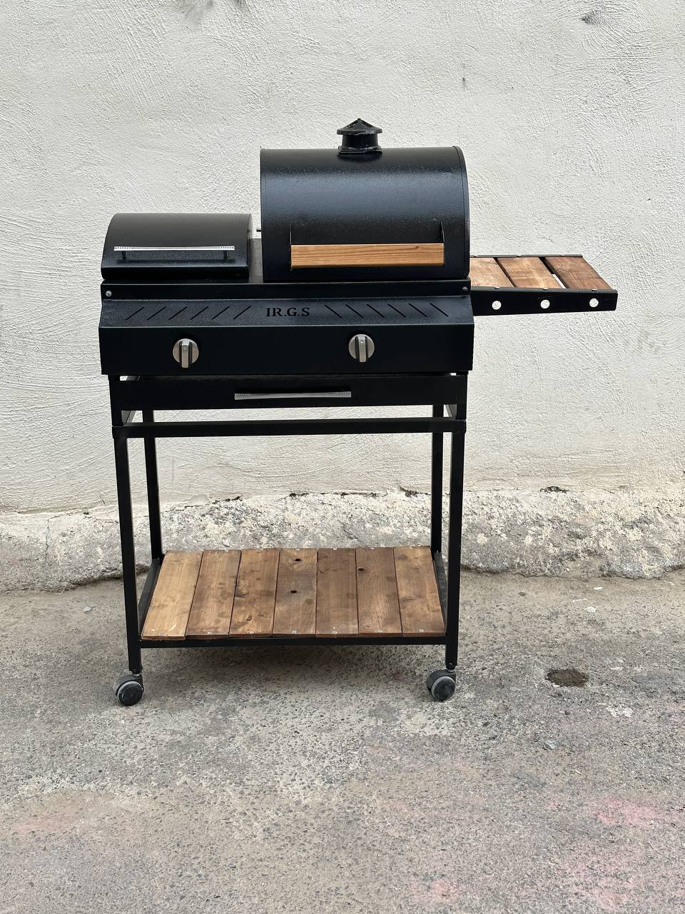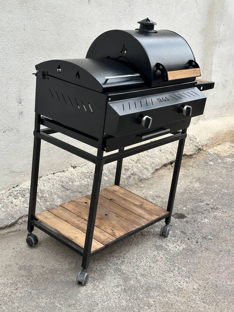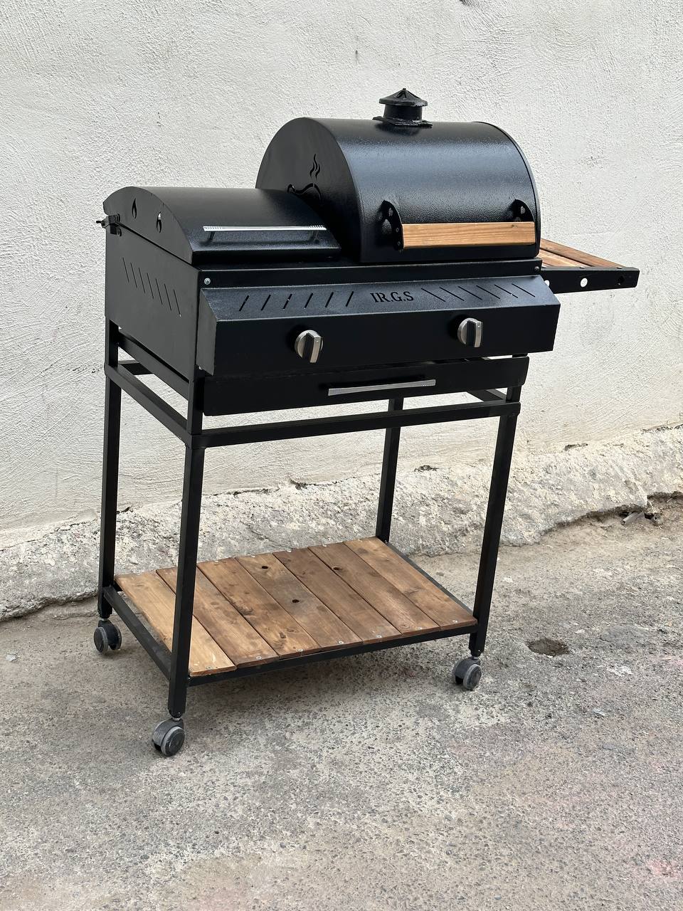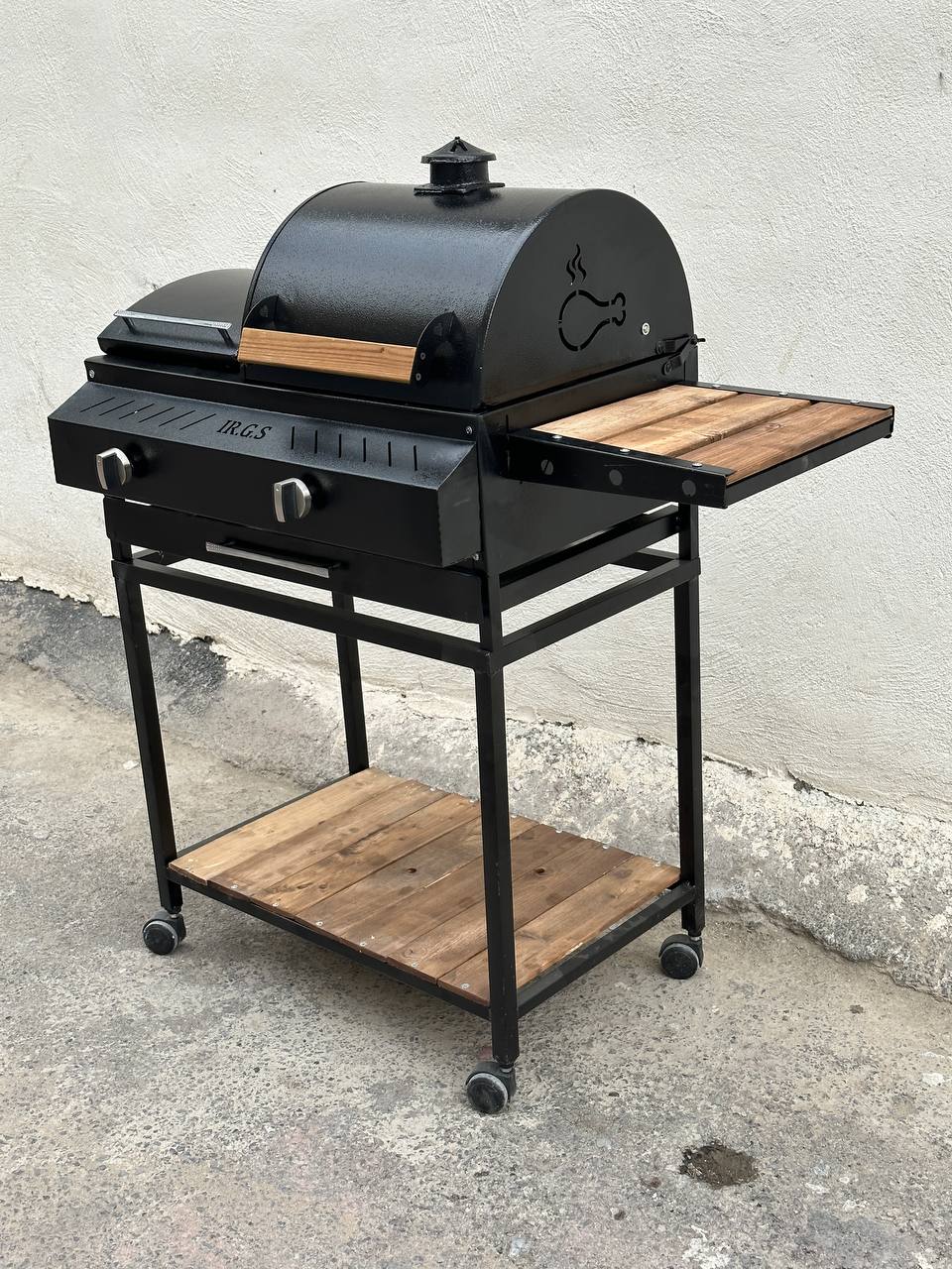 باربیکیو دوگانه گازی زغالی اجاق کنار 70 سانتی 6 شعله دهنه 35 سانتی دارای میز کنار توری گریل و استیک 4 چرخ کباب پز دومنظوره گازی زغالی باربیکیومحمد
