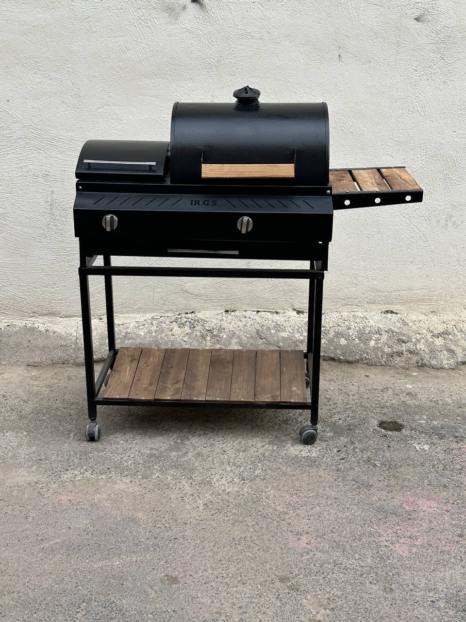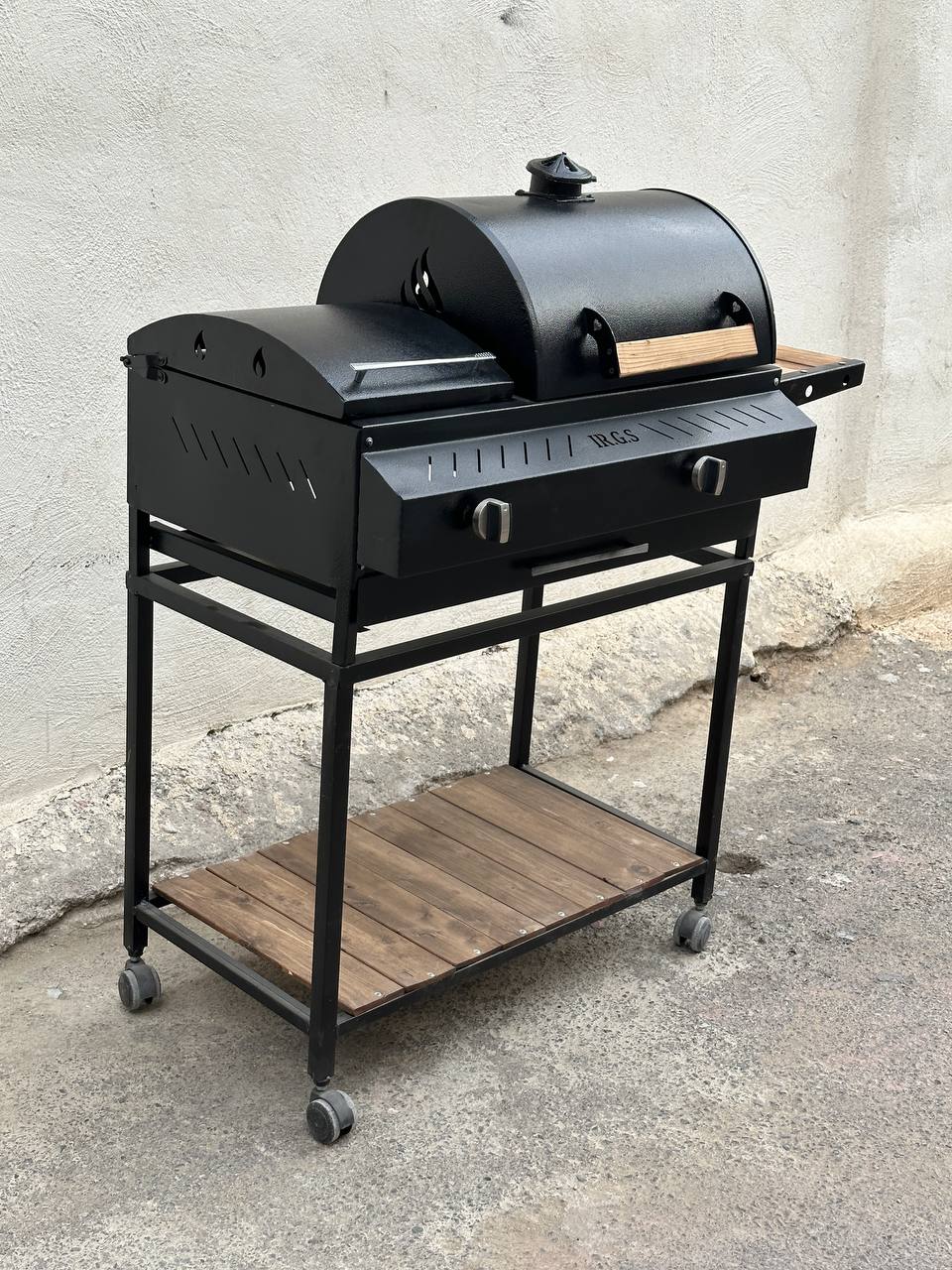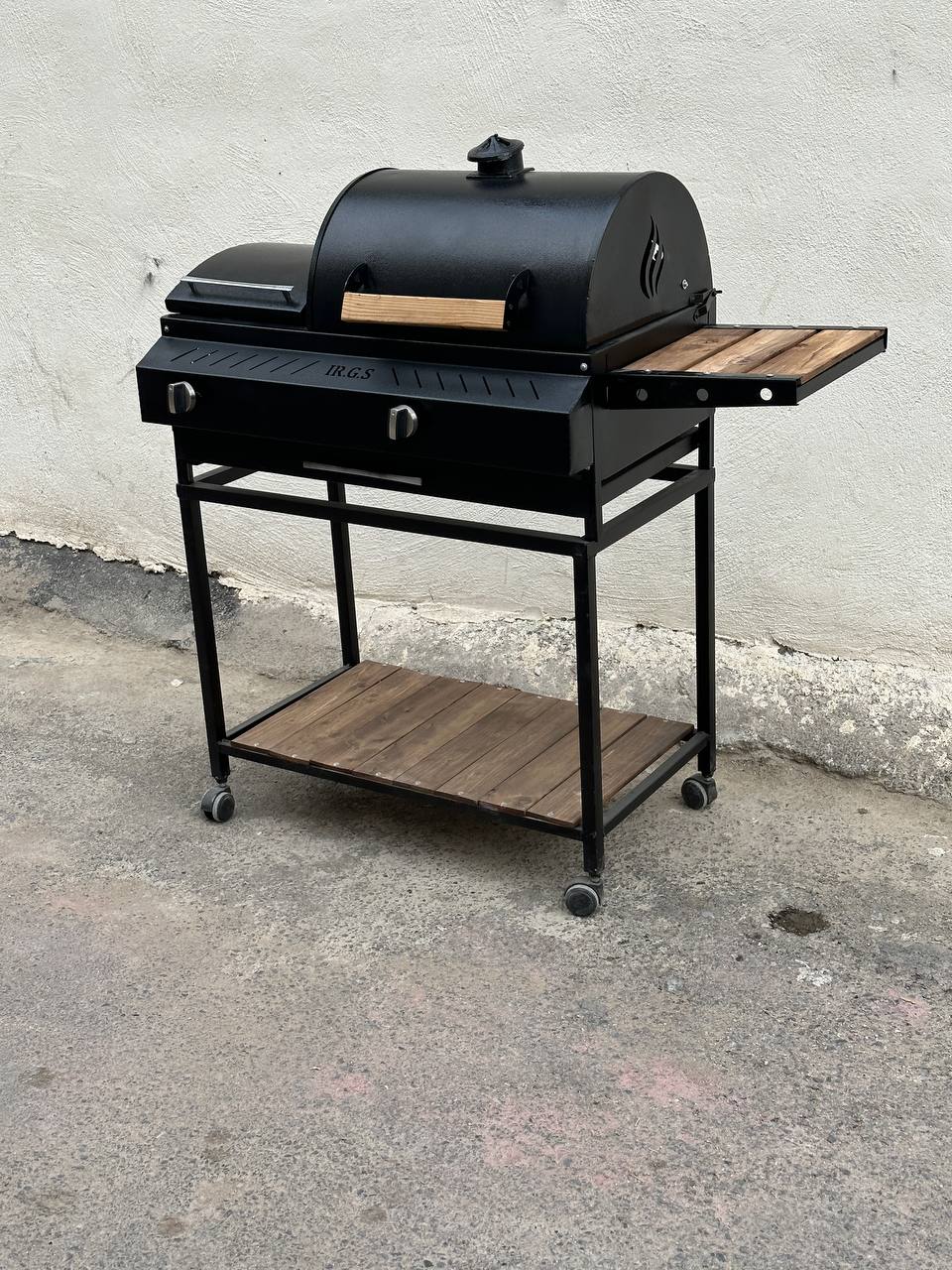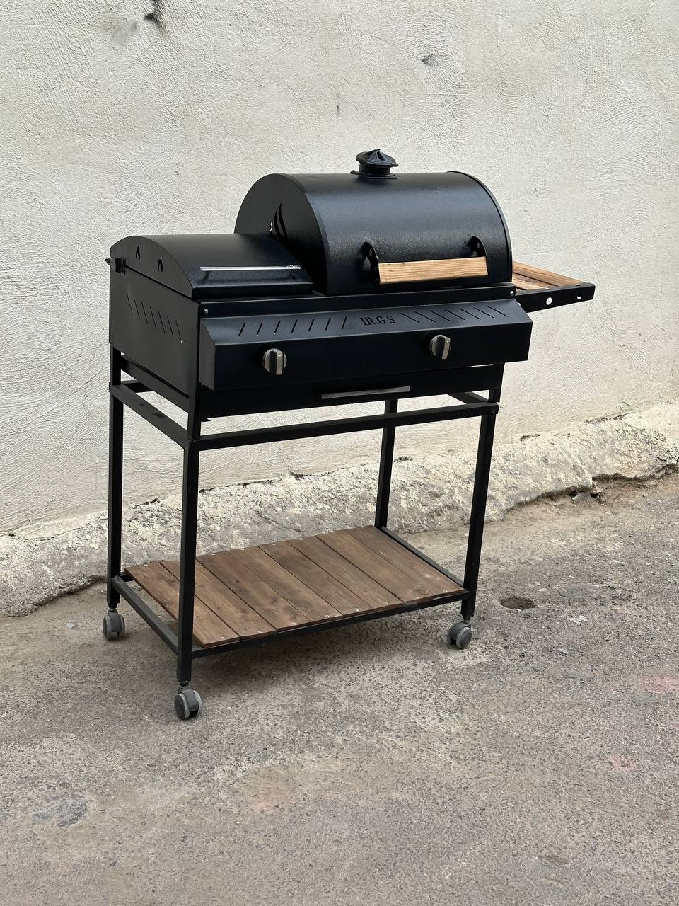 باربیکیو دوگانه گازی زغالی اجاق کنار 80 سانتی 7 شعله دهنه 35 سانتی دارای میز کنار توری گریل و استیک 4 چرخ کباب پز دومنظوره گازی زغالی باربیکیومحمد
