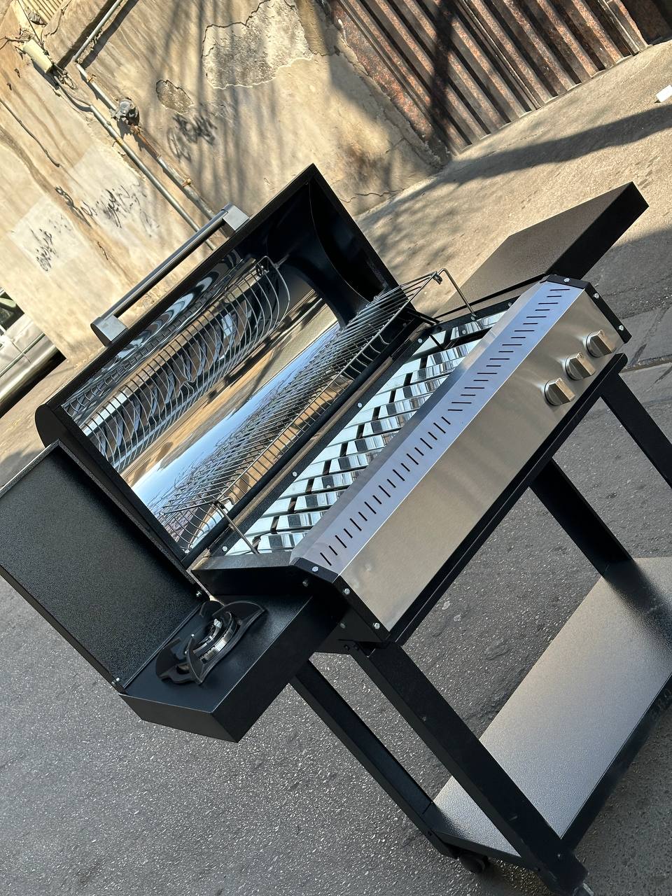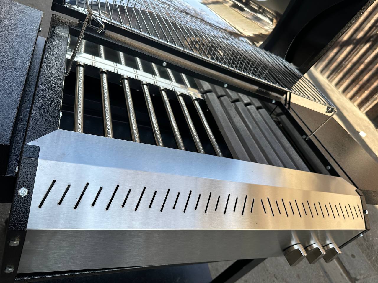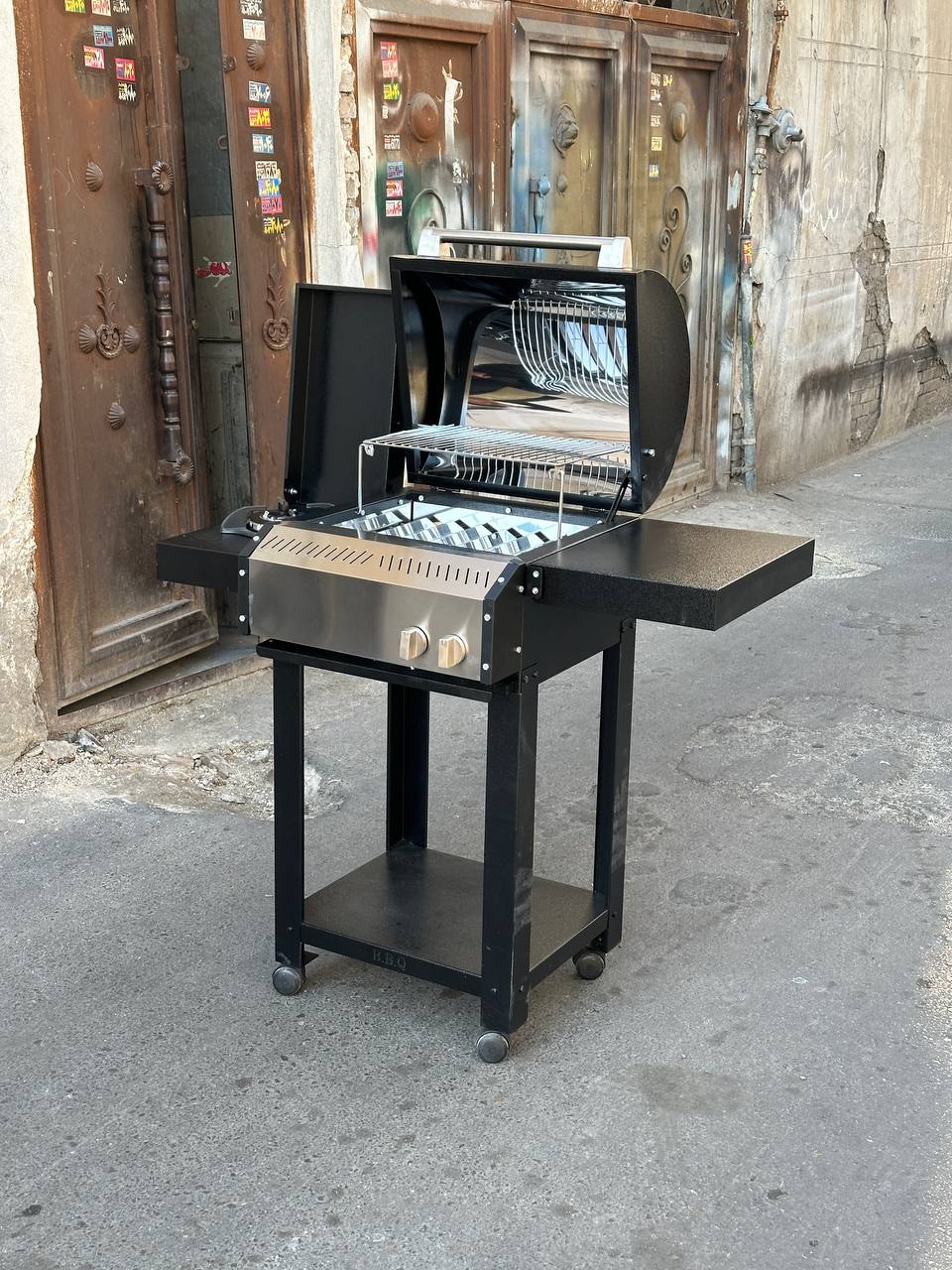 ✅️لولای قدرتمند و نگهداره درب قوی { توی تمام کارهای موجود بازاری از خارج باربیکیو یه نگهداره درب کنار دستگاه میزارن که با پیچ بسته شده به ورق دستگاه که بعد مدتی شل  میشه و حتی از ورق کار کنده میشه اما توی این کارا نگهداره درب از داخل کلاف کار رد شده و به داخل کلاف درل وصل شده که هیچ گونه شل شدگی یا ول شدگی توی کارش نیست