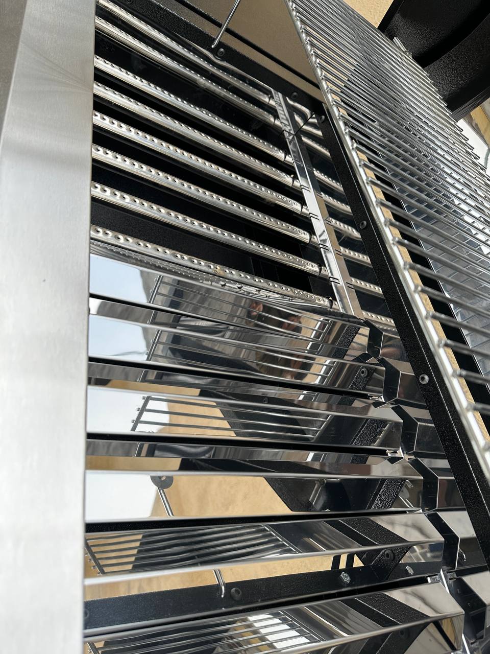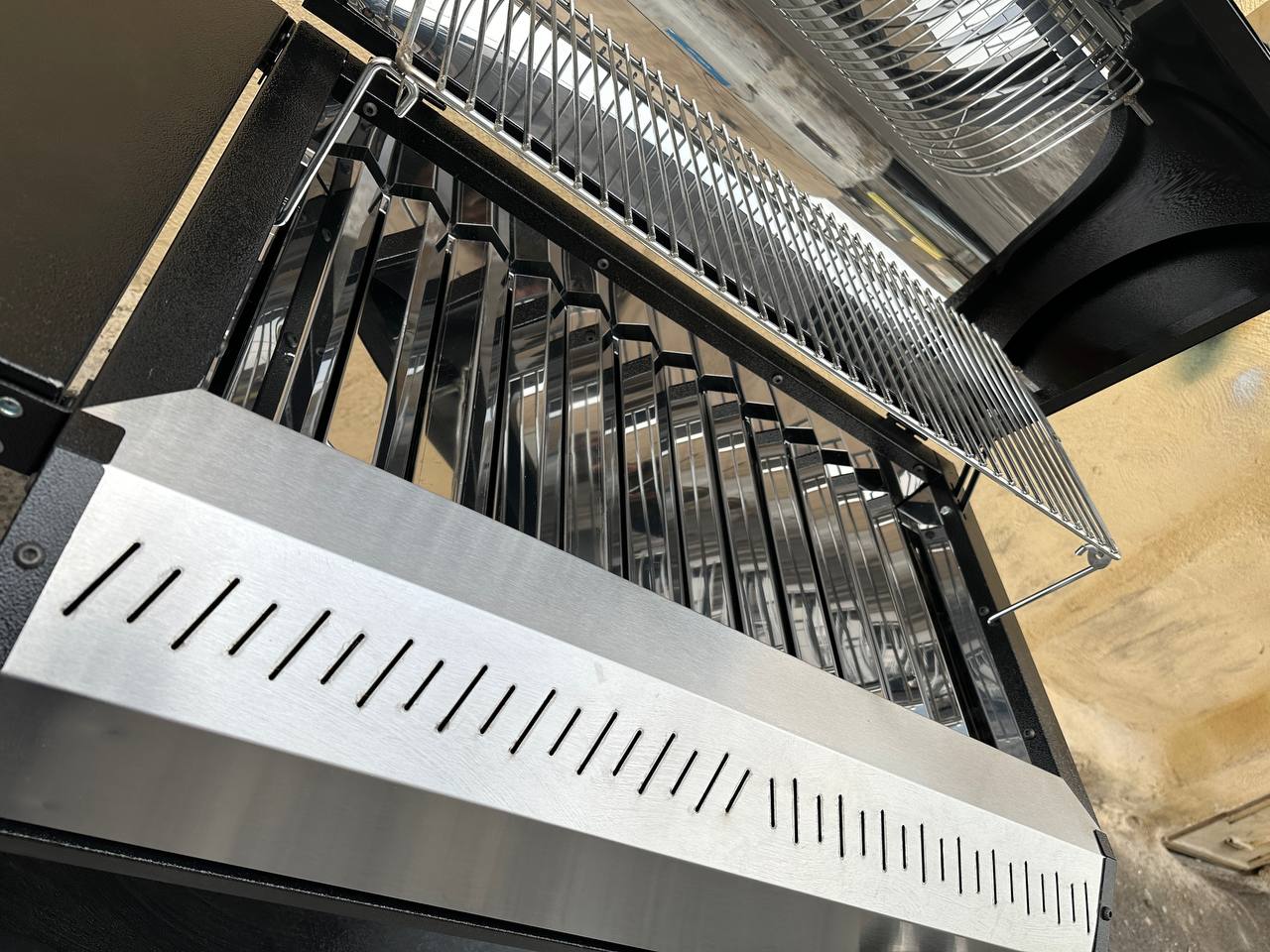 ✔️لوله های شعله و محفظه پخت داخلی کار فول استیل 304 (مقاومت خیلی بیشتر و بهتری نسبت به آهن داره و توی حرارت و آب خوردگی و رطوبت آسیب نمیبینه و نمیپوسه)✔️درب کار به صورت دولایه (درب اصلی ورق روغنی و یک لایه استیل از داخل کشیده شده برای گریل بهتر و آسیب کمتر به رنگ اصلی در)✔️رویه چدن 6ضلعی مستحکم 35 سانتی یا رویه استیل به انتخاب شما (نه چدن بی کیفیت بازاری که 30سانت هم بیشتر نیست)(معمولا رویه های کاررو چدنی میزاریم برای اینکه حرارت بهتری رو به خودش نگه میداره و پخت بهتری بهتون میده)✔️گارد بیرونی کار استیل که نمای کار هست استیل مغناطیسی با برش های تمام لیزری✔️دهنه 35 سانتی (برخلاف فروشندگان محترم که از 30 سانت بیشتر فضای سیخ ندارند کار های ما 35 سانتی میباشد)✔کلاف کشی شده با بهترین متریال✔ورق بسیار ضخیم 1میل (نه ورق های بی کیفیت بازاری کهحلبی و ضعیف هستند)✔️رنگ الکترواستاتیک (نه رنگ های بی کیفیت و ارزان بازاری)✔️تکه شدن و خورد شدن تمام کار از پایه تا درب کار(جهت حمل و جابه جایی آسان)✔شعله های تمام استیل 304 با کیفیت (نه لوله های بی کیفیت بازاری که آهنی درجه 3 هستن)